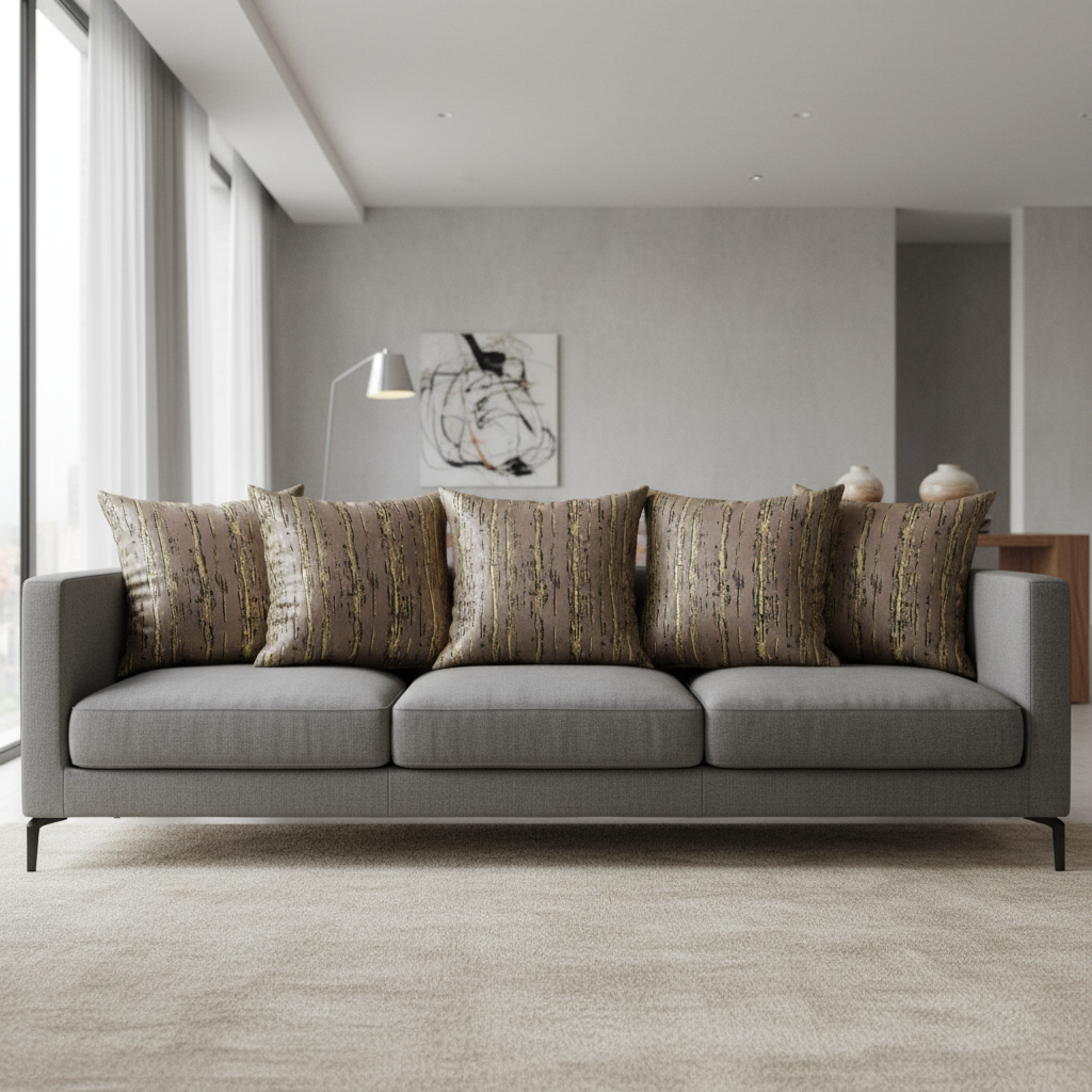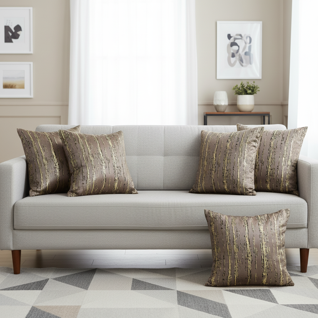 Golden Stripes Suede Cushion Covers, set of 5, Brown